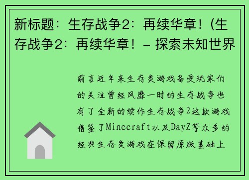 阅读前言 圣斗士游戏是一款具有极高人气的游戏,其原作《圣斗士》也是不少观众心中的经典之作。在这份游戏中,你可以动态地体验到那些熟悉的人物、配乐和剧情情节。玩家将化身黄金圣斗士,改写经典的故事,终极目标则...
